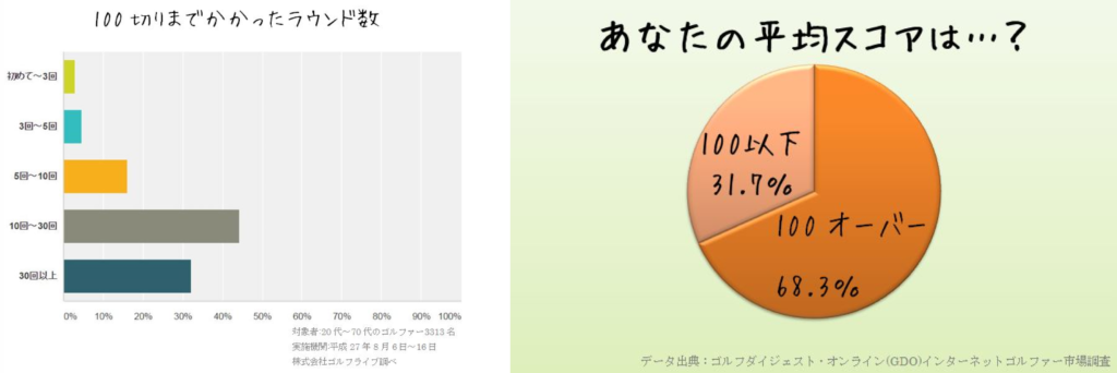 全ゴルファーのうち、100 切りを達成しているのはたったの3割